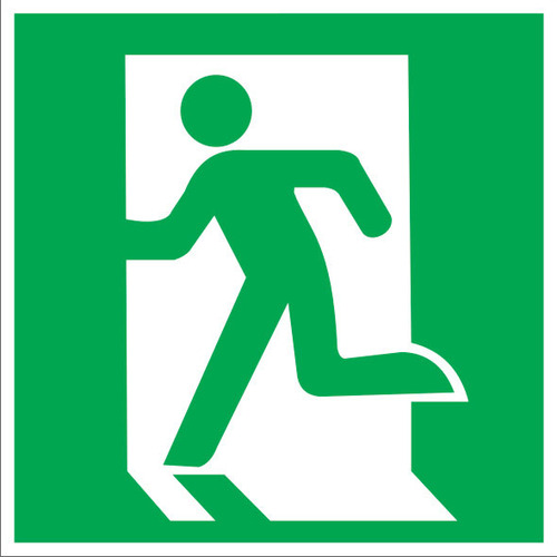 Над дверями (или на дверях) эвакуационных выходов, открывающихся с левой стороны. На стенах помещений вместе с направляющей стрелкой для указания направления движения к эвакуационному выходу |