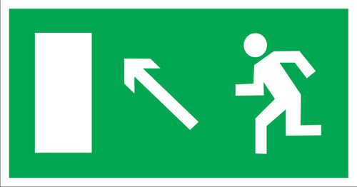 Направление к эвакуационному выходу налево вверхКод знака по ГОСТ: Е 06 |