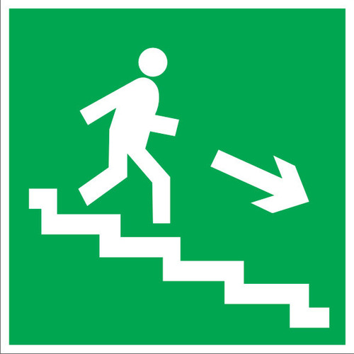 Направление к эвакуационному выходу направо внизКод знака по ГОСТ: Е 07 |