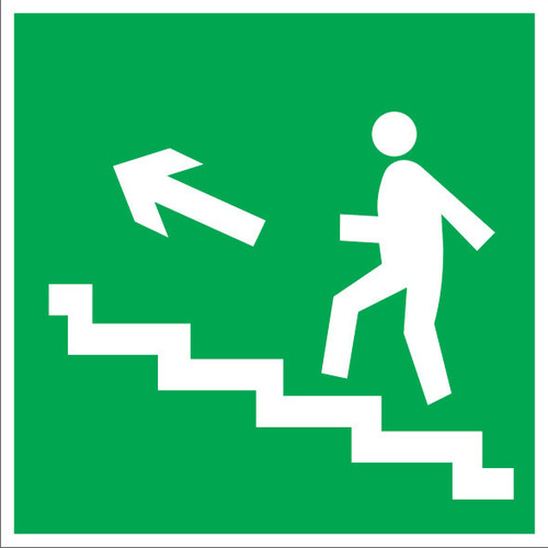 Направление к эвакуационному выходу по лестнице вверхКод знака по ГОСТ: Е 16 |
