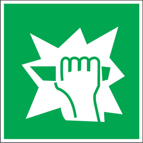 На дверях, стенах помещений и в других местах, где для доступа в помещение или выхода необходимо вскрыть определенную конструкцию, например разбить стеклянную панель и т.п. |